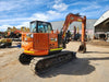 2022 HITACHI ZX85USB-5 8.5T EXCAVATOR (M828) WITH 1360 HOURS, FULL TIER 1 CIVIL SPEC, ONE OWNER, AUSTRALIAN DELIVERED MARCH 2022, 8700KG OPERATING WEIGHT, RUBBER ROADLINER TRACKS, SWIVEL BOOM, FULL A/C CABIN WITH ROPS, DOZER BLADE, AUXILIARY HYDRAULICS WITH PROPORTIONAL CONTROLS, AUTO IDLE FUNCTION, TRAVEL ALARMS, HYDRAULIC SAFETY QUICK HITCH, 450 & 600mm DIG BUCKETS, AND MUD BUCKET. RISK ASSESSMENT, UHF RADIO, E-STOPS, ISOLATOR, FULL SERVICE HISTORY, READY TO WORK. 3-MONTH DRIVETRAIN WARRANTY APPLIES