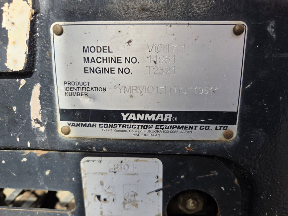 2022 YANMAR VIO17 1.8T EXCAVATOR (M850) WITH TILT HITCH, BUCKETS AND 765 HOURS