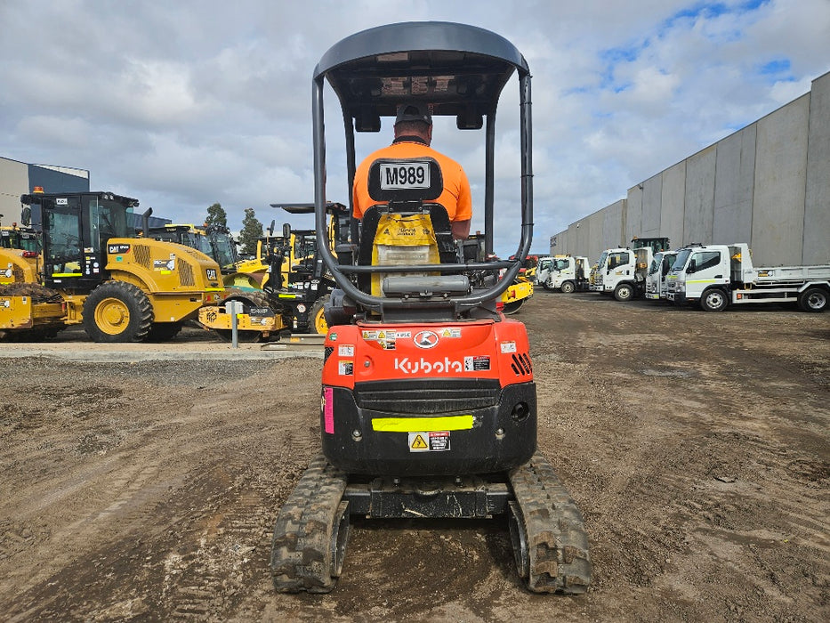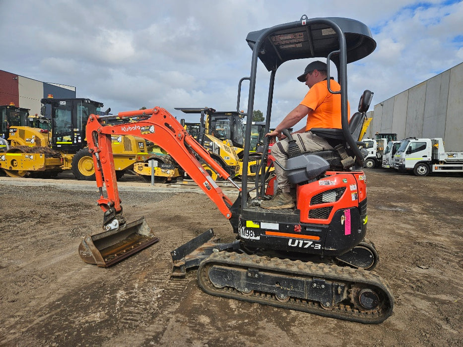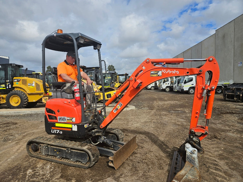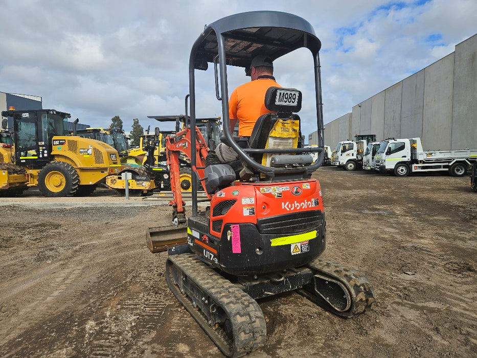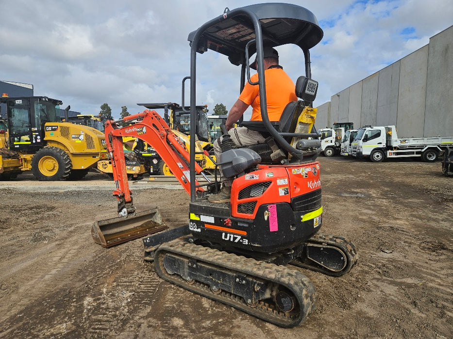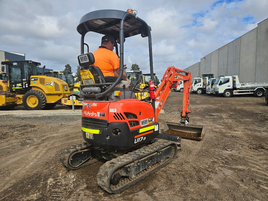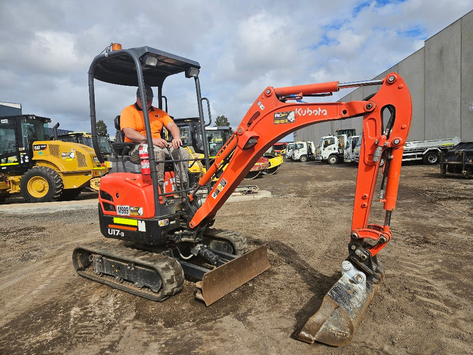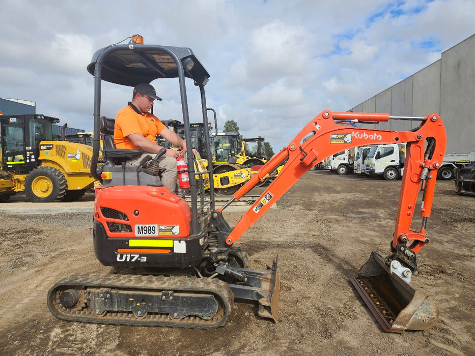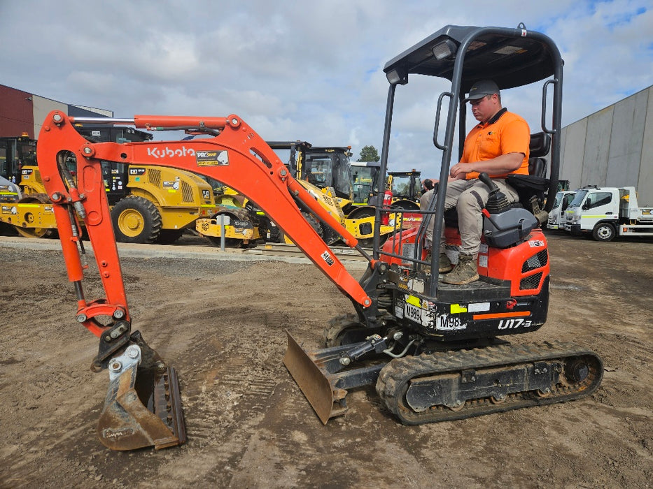 USED 2023 KUBOTA U17-3 (M989) 1.7T ZERO TURN MINI-EXCAVATOR WITH LOW 750 HRS. COMES WITH HALF HITCH, MUD BUCKET, 2 x DIG BUCKETS, HAMMER AND AUGER HYDRAULIC PIPING, DOZER BLADE, EXPANDABLE UNDERCARRIAGE WITH GOOD RUBBER TRACKS, WORK LIGHTS, FIRE EXTINGUISHER, ONE OWNER, FULL SERVICE HISTORY, FULLY SERVICED AND READY FOR WORK. AUSTRALIAN DELIVERED MARCH 2023, COMES WITH BALANCE OF FACTORY WARRANTY TO MARCH 2026.